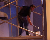 1 / 2 / 3 / 4 / 5 / 6 / 7 / 8 / 9 / 10 Tarifs de location retour Felice Varini, Rectangle orange évidé par cinq disques, via le passage Ce film documentaire relate l'installation de l'œuvre, au siège des Automobiles Peugeot, 75 avenue de la Grande Armée, Paris, en hiver 2000. Sous l'œil médusé de l'équipe dirigeante de Peugeot, qui voit tous les matins la progression de l'installation, Félice Varini et son équipe investissent les lieux, nuit et jour, et l'espace se remplit peu à peu, suivant exactement le croquis dessiné par Varini, de fragments rouges, épars ou jointifs, selon le point de vue. Réalisateur : Antoine de Roux